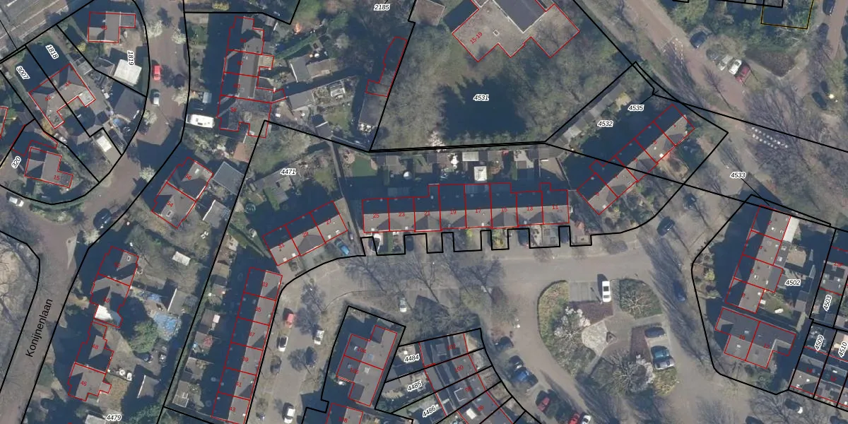 Het perceel waarop Burgemeester Fabiuspark 21 staat heeft een oppervlakte van 3045 m². Dit is een zeer groot perceel. De perceeloppervlakte wordt geregistreerd door het Kadaster. Gedetailleerde informatie over de maten van dit perceel kunt u vinden in het rapport Kadastrale kaart met maatvoering van Burgemeester Fabiuspark 21.