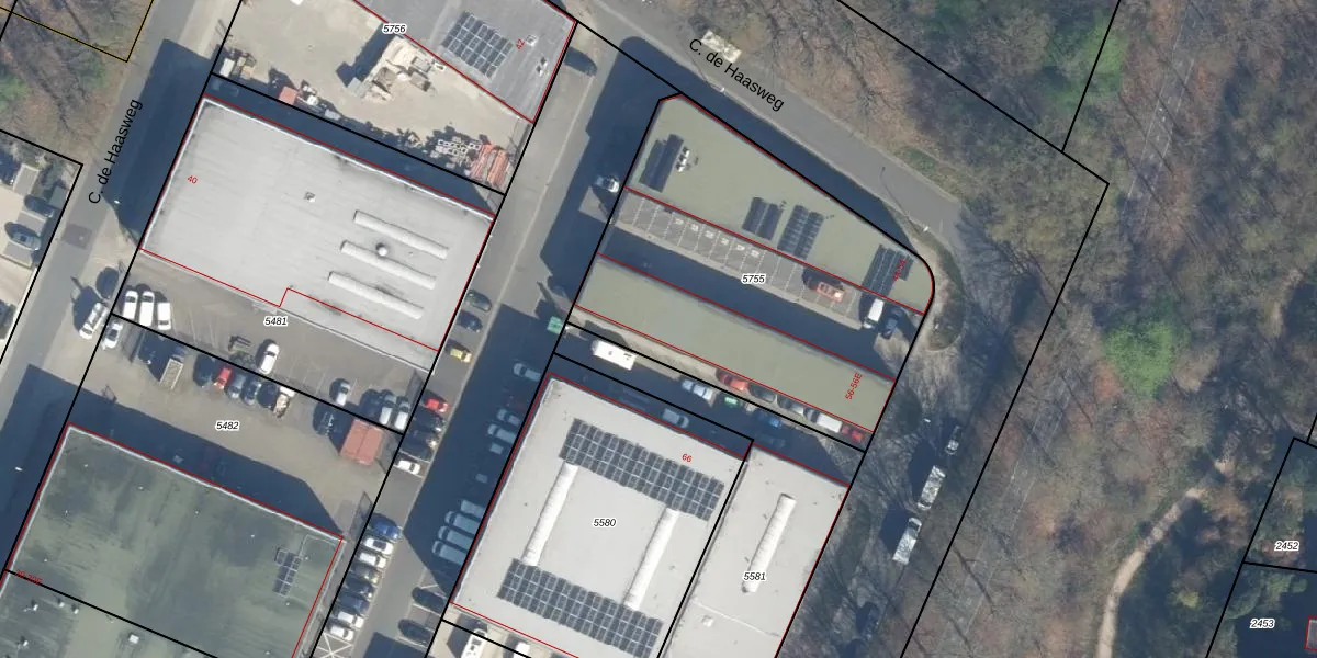 C. de Haasweg 56-D is gelegen op kadastraal perceel BIL01F5755. Deze kadastrale aanduiding is uniek en wordt gebruikt door het Kadaster om eigendomsrechten en andere zakelijke rechten vast te leggen. Het perceel maakt onderdeel uit van de kadastrale gemeente De Bilt.