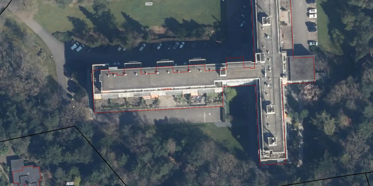 Het perceel waarop De Hooghlaan 2-A18 staat heeft een oppervlakte van 2,7 ha. Dit is een zeer groot perceel. De perceeloppervlakte wordt geregistreerd door het Kadaster. Gedetailleerde informatie over de maten van dit perceel kunt u vinden in het rapport Kadastrale kaart met maatvoering van De Hooghlaan 2-A18.