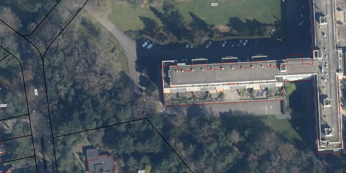 Het perceel waarop De Hooghlaan 2-A41 staat heeft een oppervlakte van 2,7 ha. Dit is een zeer groot perceel. De perceeloppervlakte wordt geregistreerd door het Kadaster. Gedetailleerde informatie over de maten van dit perceel kunt u vinden in het rapport Kadastrale kaart met maatvoering van De Hooghlaan 2-A41.