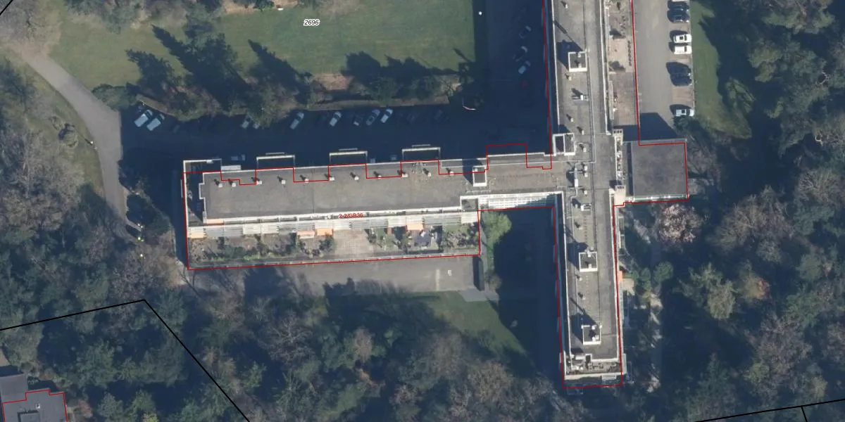 Het perceel waarop De Hooghlaan 2-B05 staat heeft een oppervlakte van 2,7 ha. Dit is een zeer groot perceel. De perceeloppervlakte wordt geregistreerd door het Kadaster. Gedetailleerde informatie over de maten van dit perceel kunt u vinden in het rapport Kadastrale kaart met maatvoering van De Hooghlaan 2-B05.