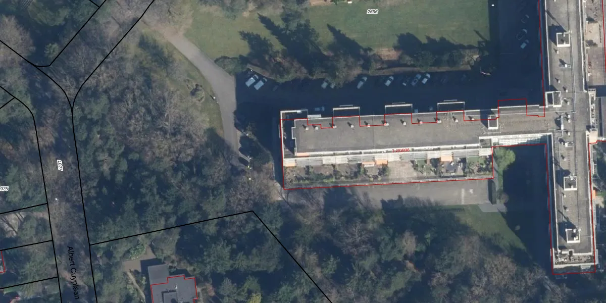 Het perceel waarop De Hooghlaan 2-B06 staat heeft een oppervlakte van 2,7 ha. Dit is een zeer groot perceel. De perceeloppervlakte wordt geregistreerd door het Kadaster. Gedetailleerde informatie over de maten van dit perceel kunt u vinden in het rapport Kadastrale kaart met maatvoering van De Hooghlaan 2-B06.