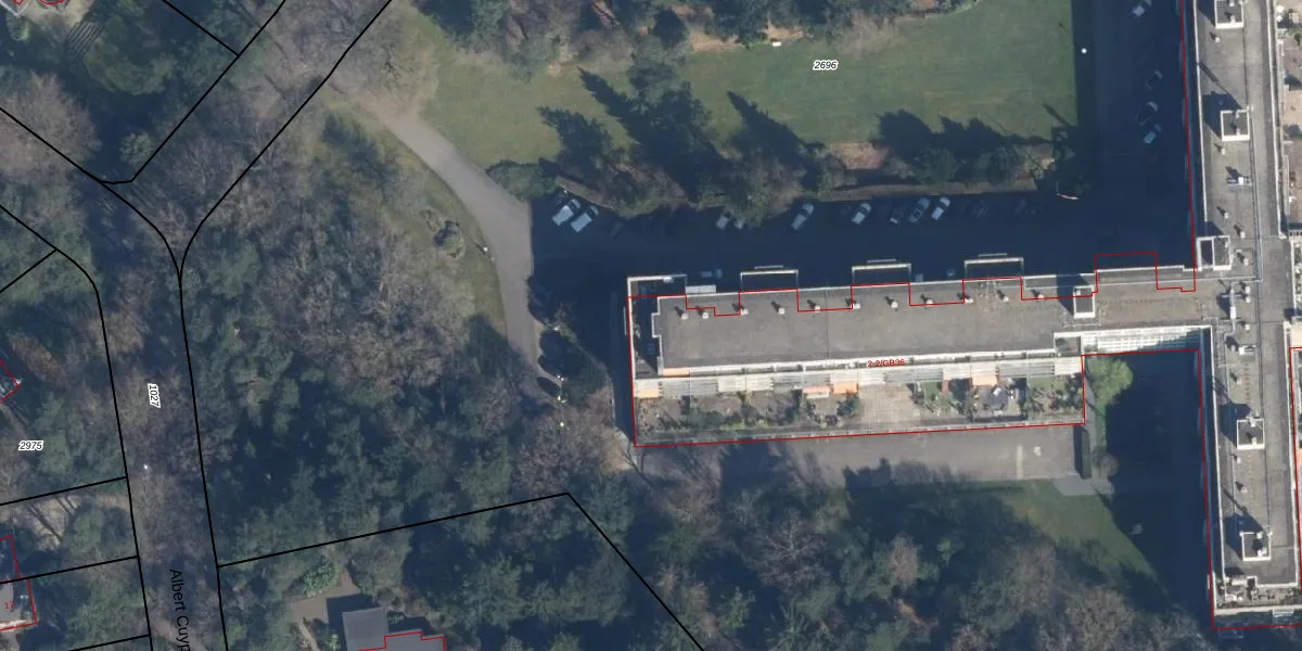 Het perceel waarop De Hooghlaan 2-B12 staat heeft een oppervlakte van 2,7 ha. Dit is een zeer groot perceel. De perceeloppervlakte wordt geregistreerd door het Kadaster. Gedetailleerde informatie over de maten van dit perceel kunt u vinden in het rapport Kadastrale kaart met maatvoering van De Hooghlaan 2-B12.