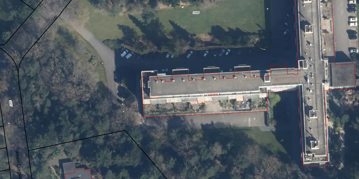 Het perceel waarop De Hooghlaan 2-B20 staat heeft een oppervlakte van 2,7 ha. Dit is een zeer groot perceel. De perceeloppervlakte wordt geregistreerd door het Kadaster. Gedetailleerde informatie over de maten van dit perceel kunt u vinden in het rapport Kadastrale kaart met maatvoering van De Hooghlaan 2-B20.