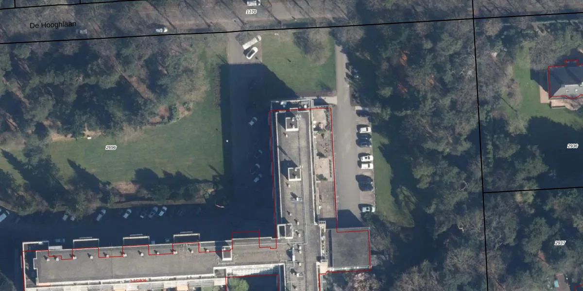 Het perceel waarop De Hooghlaan 2-C10 staat heeft een oppervlakte van 2,7 ha. Dit is een zeer groot perceel. De perceeloppervlakte wordt geregistreerd door het Kadaster. Gedetailleerde informatie over de maten van dit perceel kunt u vinden in het rapport Kadastrale kaart met maatvoering van De Hooghlaan 2-C10.