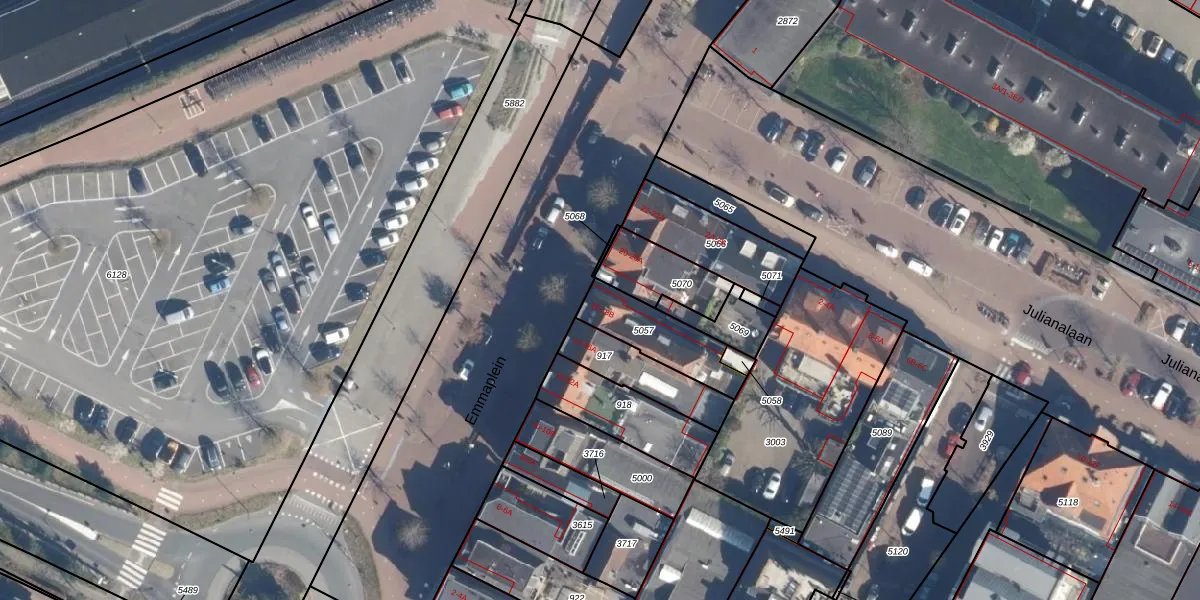Het perceel waarop Emmaplein 18 staat heeft een oppervlakte van 205 m². Dit is een middelgroot perceel. De perceeloppervlakte wordt geregistreerd door het Kadaster. Gedetailleerde informatie over de maten van dit perceel kunt u vinden in het rapport Kadastrale kaart met maatvoering van Emmaplein 18.