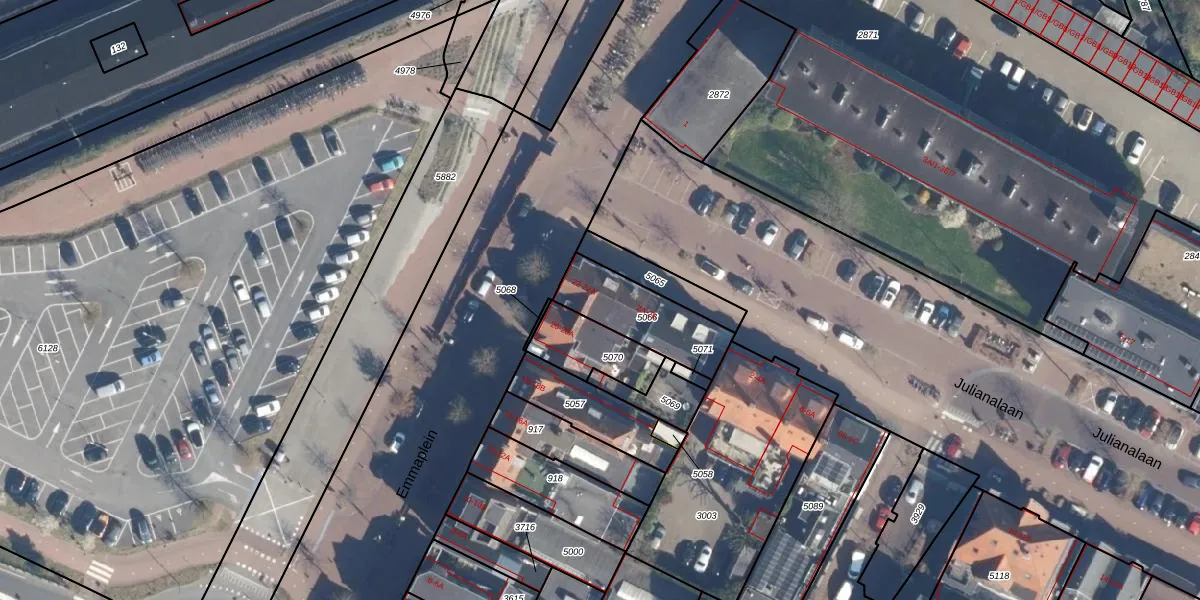 Het perceel waarop Emmaplein 22 staat heeft een oppervlakte van 263 m². Dit is een middelgroot perceel. De perceeloppervlakte wordt geregistreerd door het Kadaster. Gedetailleerde informatie over de maten van dit perceel kunt u vinden in het rapport Kadastrale kaart met maatvoering van Emmaplein 22.