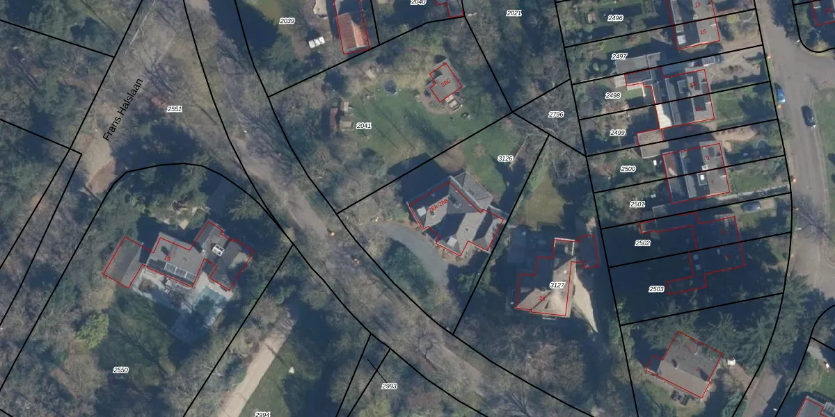 Het perceel waarop Frans Halslaan 28-B staat heeft een oppervlakte van 1306 m². Dit is een zeer groot perceel. De perceeloppervlakte wordt geregistreerd door het Kadaster. Gedetailleerde informatie over de maten van dit perceel kunt u vinden in het rapport Kadastrale kaart met maatvoering van Frans Halslaan 28-B.