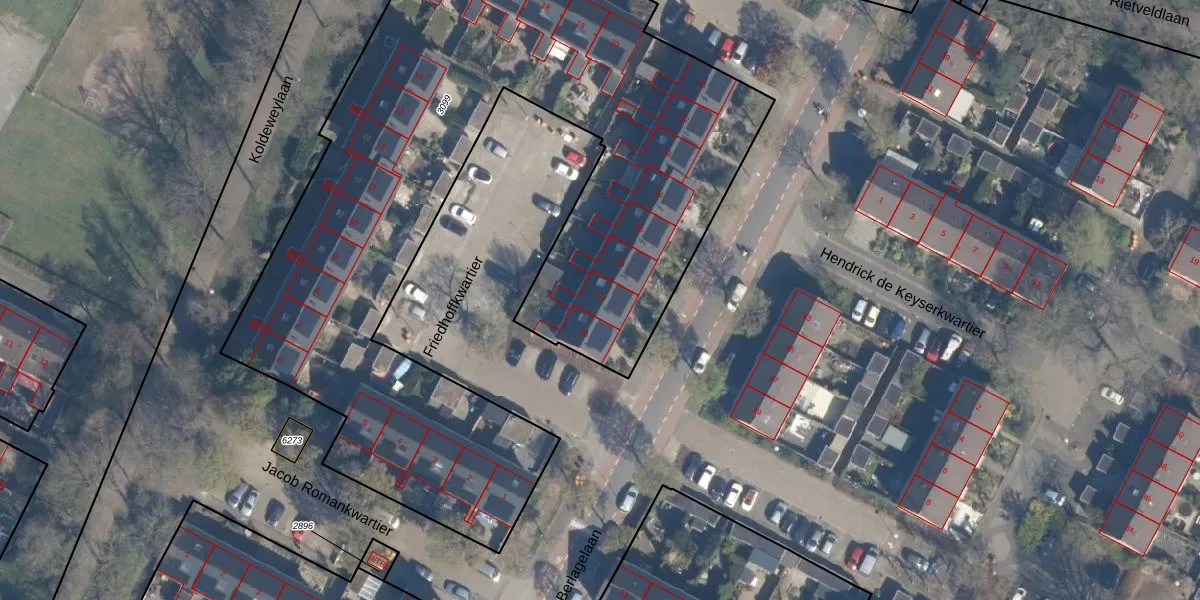 Het perceel waarop Friedhoffkwartier 27 staat heeft een oppervlakte van 4265 m². Dit is een zeer groot perceel. De perceeloppervlakte wordt geregistreerd door het Kadaster. Gedetailleerde informatie over de maten van dit perceel kunt u vinden in het rapport Kadastrale kaart met maatvoering van Friedhoffkwartier 27.