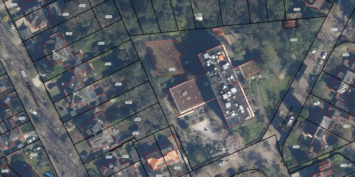 Het perceel waarop Gregoriuslaan 35-102 staat heeft een oppervlakte van 5472 m². Dit is een zeer groot perceel. De perceeloppervlakte wordt geregistreerd door het Kadaster. Gedetailleerde informatie over de maten van dit perceel kunt u vinden in het rapport Kadastrale kaart met maatvoering van Gregoriuslaan 35-102.