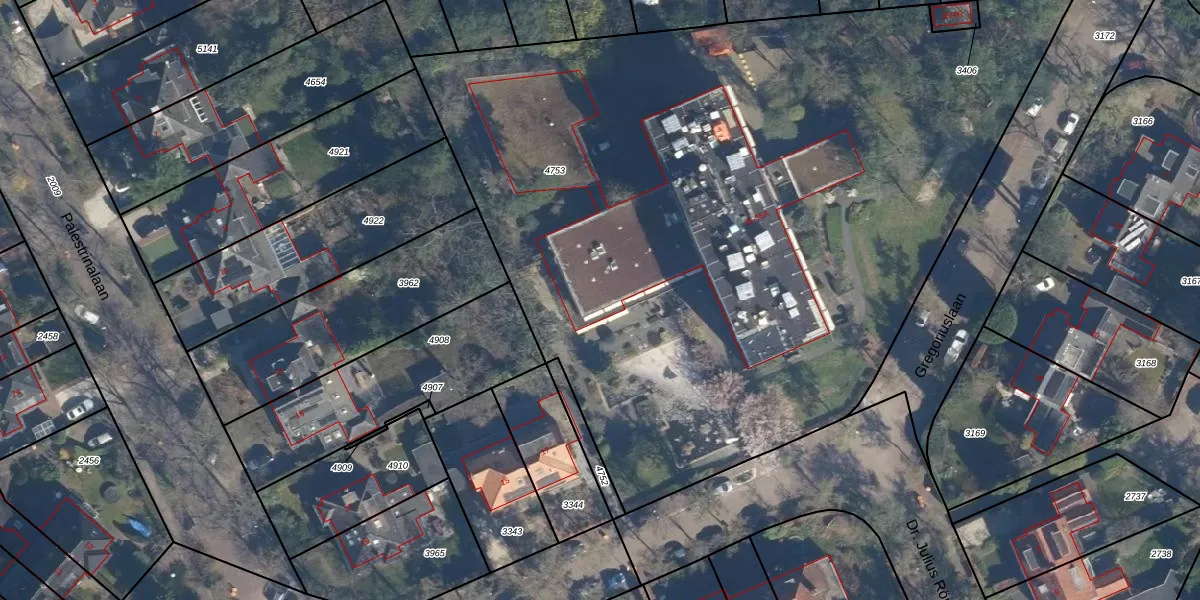 Het perceel waarop Gregoriuslaan 35-401 staat heeft een oppervlakte van 5472 m². Dit is een zeer groot perceel. De perceeloppervlakte wordt geregistreerd door het Kadaster. Gedetailleerde informatie over de maten van dit perceel kunt u vinden in het rapport Kadastrale kaart met maatvoering van Gregoriuslaan 35-401.