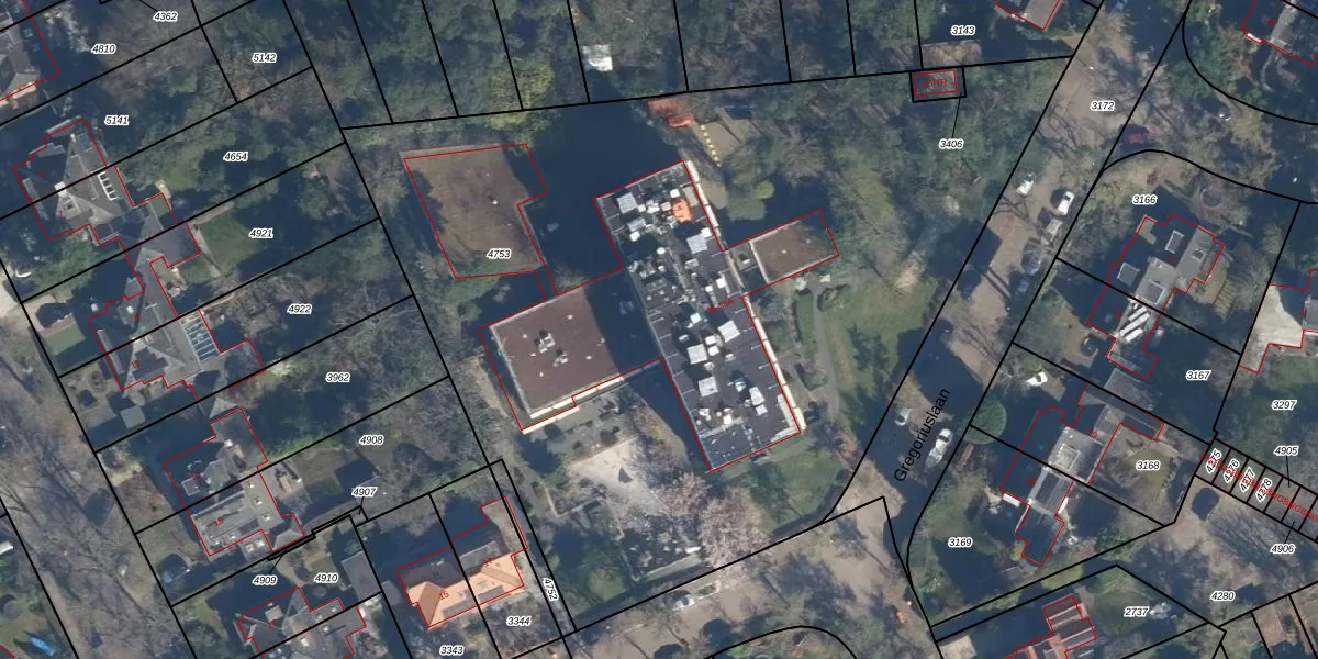 Het perceel waarop Gregoriuslaan 35-207 staat heeft een oppervlakte van 5472 m². Dit is een zeer groot perceel. De perceeloppervlakte wordt geregistreerd door het Kadaster. Gedetailleerde informatie over de maten van dit perceel kunt u vinden in het rapport Kadastrale kaart met maatvoering van Gregoriuslaan 35-207.