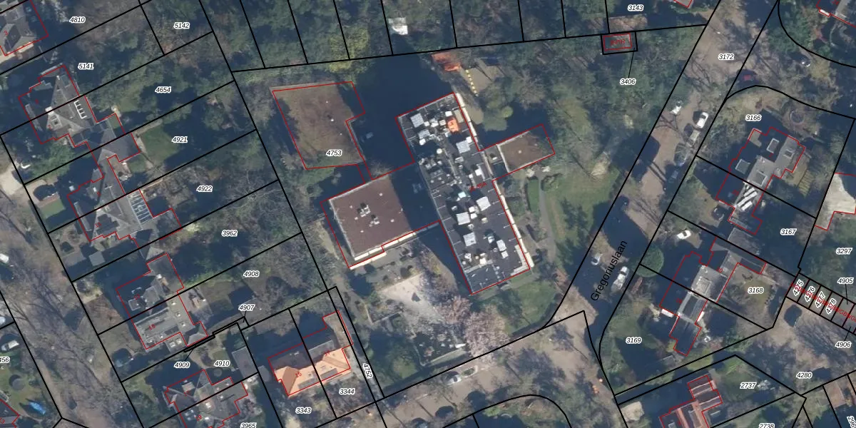 Het perceel waarop Gregoriuslaan 35-116 staat heeft een oppervlakte van 5472 m². Dit is een zeer groot perceel. De perceeloppervlakte wordt geregistreerd door het Kadaster. Gedetailleerde informatie over de maten van dit perceel kunt u vinden in het rapport Kadastrale kaart met maatvoering van Gregoriuslaan 35-116.