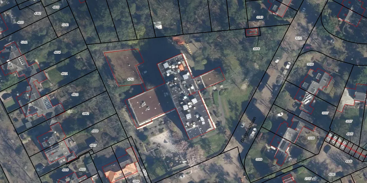 Het perceel waarop Gregoriuslaan 35-411 staat heeft een oppervlakte van 5472 m². Dit is een zeer groot perceel. De perceeloppervlakte wordt geregistreerd door het Kadaster. Gedetailleerde informatie over de maten van dit perceel kunt u vinden in het rapport Kadastrale kaart met maatvoering van Gregoriuslaan 35-411.