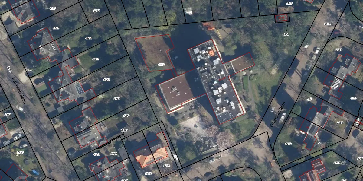 Het perceel waarop Gregoriuslaan 35-107 staat heeft een oppervlakte van 5472 m². Dit is een zeer groot perceel. De perceeloppervlakte wordt geregistreerd door het Kadaster. Gedetailleerde informatie over de maten van dit perceel kunt u vinden in het rapport Kadastrale kaart met maatvoering van Gregoriuslaan 35-107.