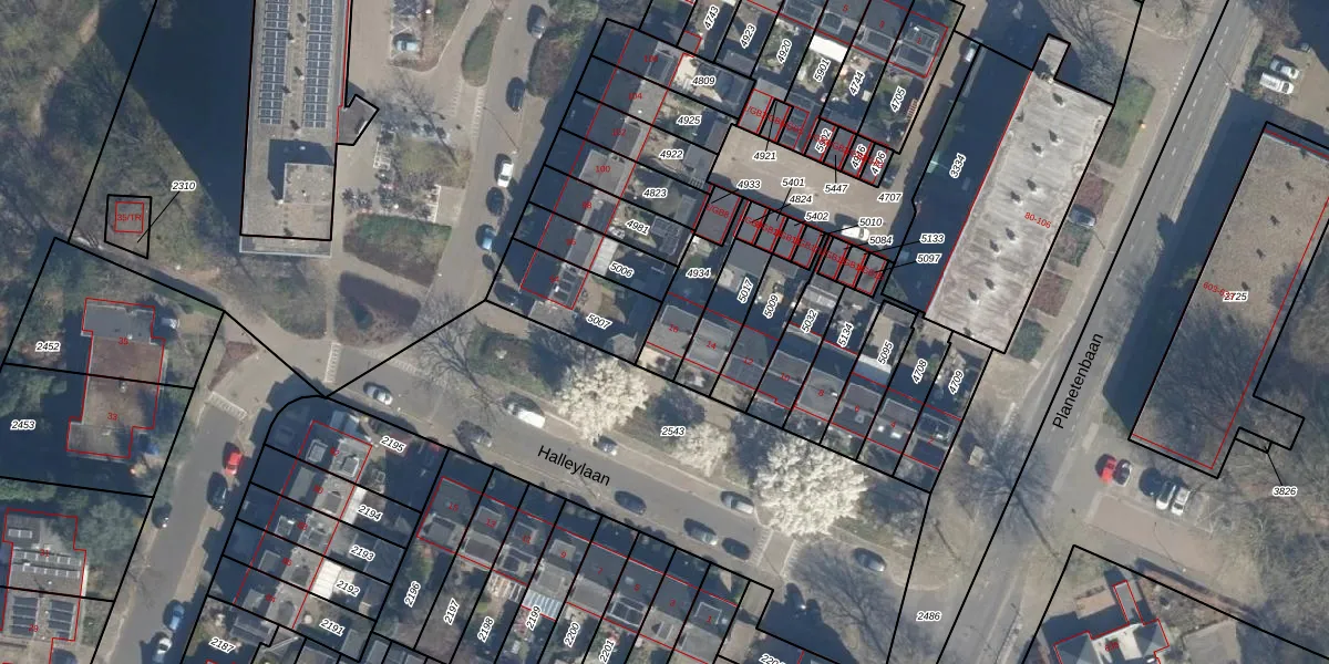 Gebruik de zoekbalk of klik op een perceel voor informatie over de adressen binnen dit perceel.