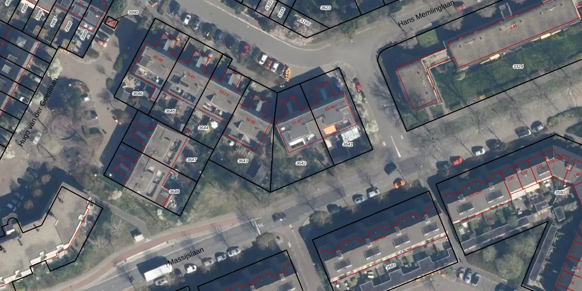 Het perceel waarop Hans Memlinglaan 55 staat heeft een oppervlakte van 490 m². Dit is een groot perceel. De perceeloppervlakte wordt geregistreerd door het Kadaster. Gedetailleerde informatie over de maten van dit perceel kunt u vinden in het rapport Kadastrale kaart met maatvoering van Hans Memlinglaan 55.