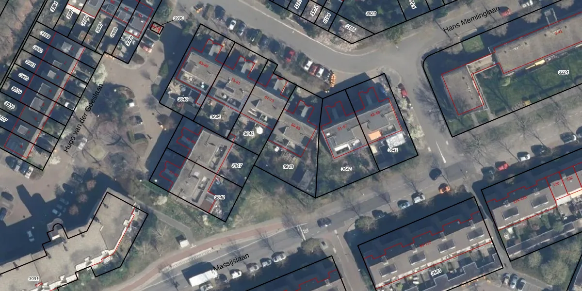 Het perceel waarop Hans Memlinglaan 65 staat heeft een oppervlakte van 525 m². Dit is een groot perceel. De perceeloppervlakte wordt geregistreerd door het Kadaster. Gedetailleerde informatie over de maten van dit perceel kunt u vinden in het rapport Kadastrale kaart met maatvoering van Hans Memlinglaan 65.