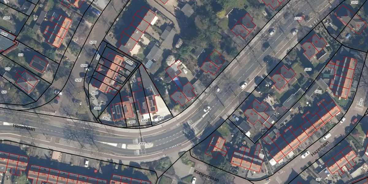 Het perceel waarop Hertenlaan 17 staat heeft een oppervlakte van 6830 m². Dit is een zeer groot perceel. De perceeloppervlakte wordt geregistreerd door het Kadaster. Gedetailleerde informatie over de maten van dit perceel kunt u vinden in het rapport Kadastrale kaart met maatvoering van Hertenlaan 17.