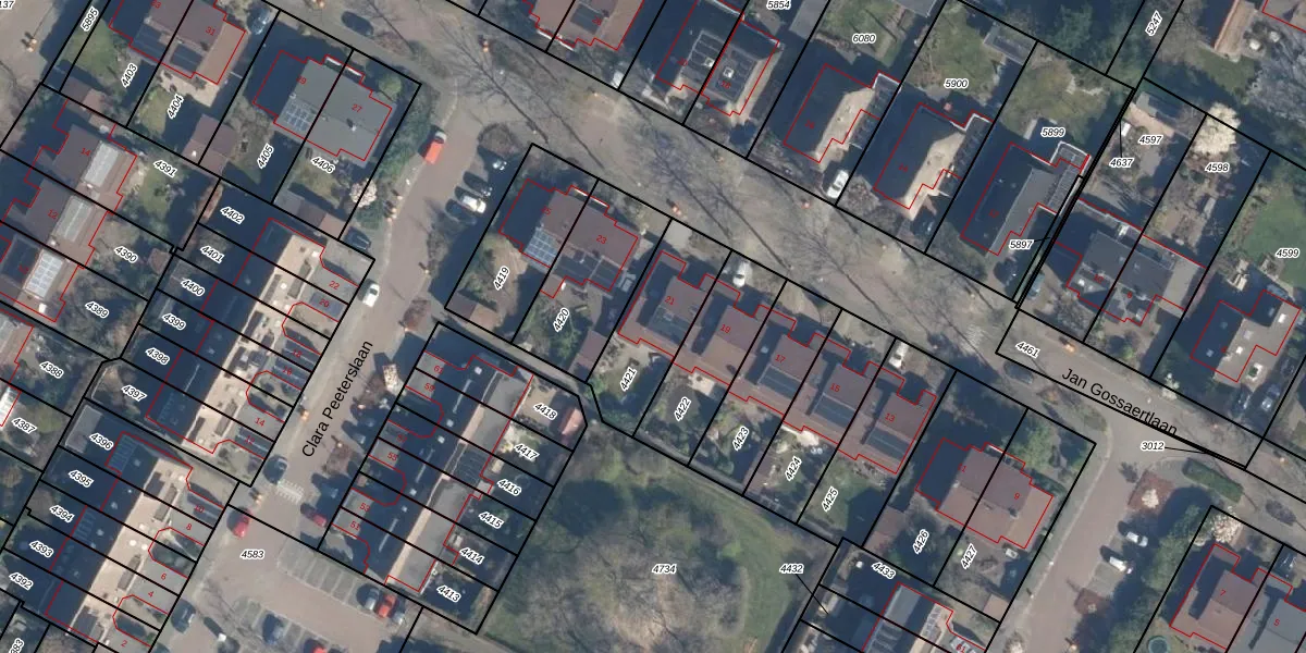 Het perceel waarop Jan Gossaertlaan 21 staat heeft een oppervlakte van 331 m². Dit is een groot perceel. De perceeloppervlakte wordt geregistreerd door het Kadaster. Gedetailleerde informatie over de maten van dit perceel kunt u vinden in het rapport Kadastrale kaart met maatvoering van Jan Gossaertlaan 21.