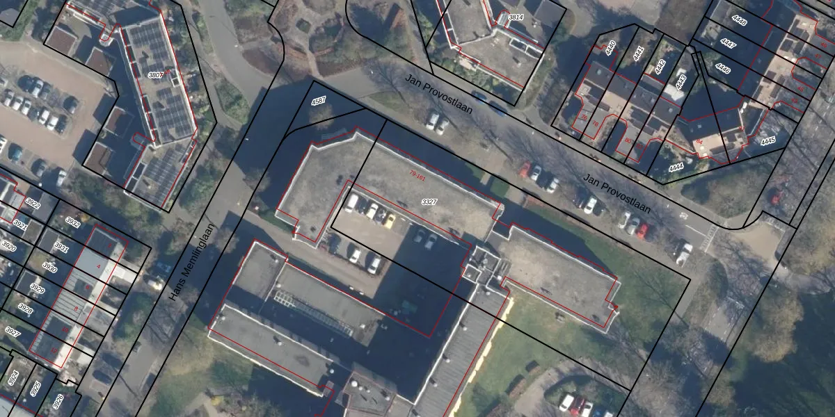 Het perceel waarop Jan Provostlaan 147 staat heeft een oppervlakte van 2445 m². Dit is een zeer groot perceel. De perceeloppervlakte wordt geregistreerd door het Kadaster. Gedetailleerde informatie over de maten van dit perceel kunt u vinden in het rapport Kadastrale kaart met maatvoering van Jan Provostlaan 147.