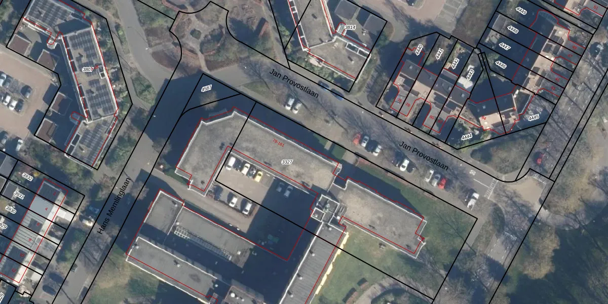 Het perceel waarop Jan Provostlaan 91 staat heeft een oppervlakte van 2445 m². Dit is een zeer groot perceel. De perceeloppervlakte wordt geregistreerd door het Kadaster. Gedetailleerde informatie over de maten van dit perceel kunt u vinden in het rapport Kadastrale kaart met maatvoering van Jan Provostlaan 91.