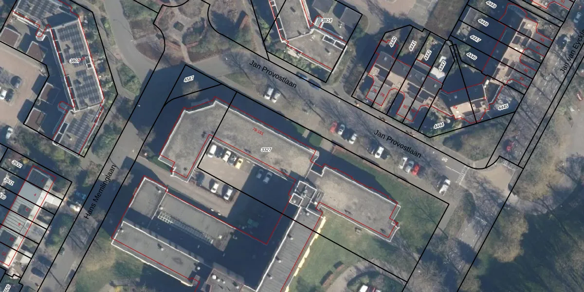 Het perceel waarop Jan Provostlaan 93 staat heeft een oppervlakte van 2445 m². Dit is een zeer groot perceel. De perceeloppervlakte wordt geregistreerd door het Kadaster. Gedetailleerde informatie over de maten van dit perceel kunt u vinden in het rapport Kadastrale kaart met maatvoering van Jan Provostlaan 93.