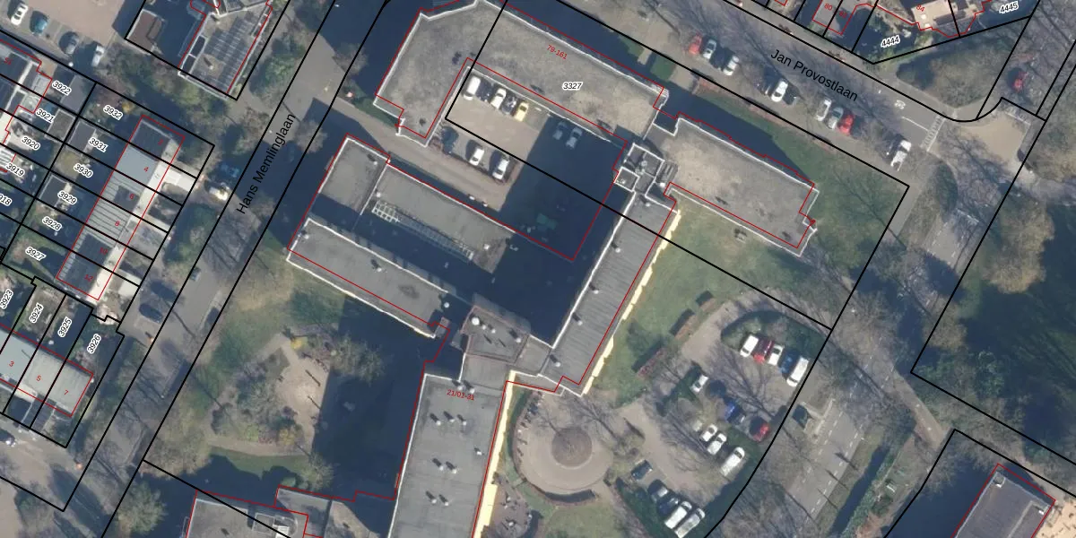 Het perceel waarop Jan van Eycklaan 25-16 staat heeft een oppervlakte van 8530 m². Dit is een zeer groot perceel. De perceeloppervlakte wordt geregistreerd door het Kadaster. Gedetailleerde informatie over de maten van dit perceel kunt u vinden in het rapport Kadastrale kaart met maatvoering van Jan van Eycklaan 25-16.