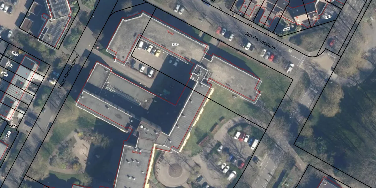 Het perceel waarop Jan van Eycklaan 27-01 staat heeft een oppervlakte van 8530 m². Dit is een zeer groot perceel. De perceeloppervlakte wordt geregistreerd door het Kadaster. Gedetailleerde informatie over de maten van dit perceel kunt u vinden in het rapport Kadastrale kaart met maatvoering van Jan van Eycklaan 27-01.