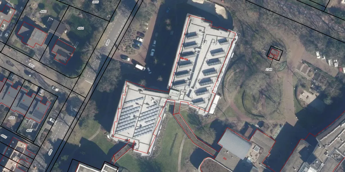 Het perceel waarop Jan van Eycklaan 290 staat heeft een oppervlakte van 4,2 ha. Dit is een zeer groot perceel. De perceeloppervlakte wordt geregistreerd door het Kadaster. Gedetailleerde informatie over de maten van dit perceel kunt u vinden in het rapport Kadastrale kaart met maatvoering van Jan van Eycklaan 290.