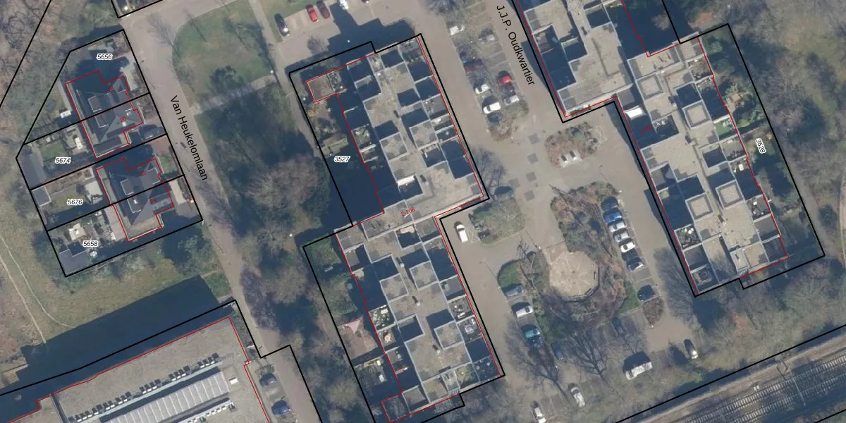 Het perceel waarop J.J.P. Oudkwartier 1-GB41 staat heeft een oppervlakte van 2855 m². Dit is een zeer groot perceel. De perceeloppervlakte wordt geregistreerd door het Kadaster. Gedetailleerde informatie over de maten van dit perceel kunt u vinden in het rapport Kadastrale kaart met maatvoering van J.J.P. Oudkwartier 1-GB41.
