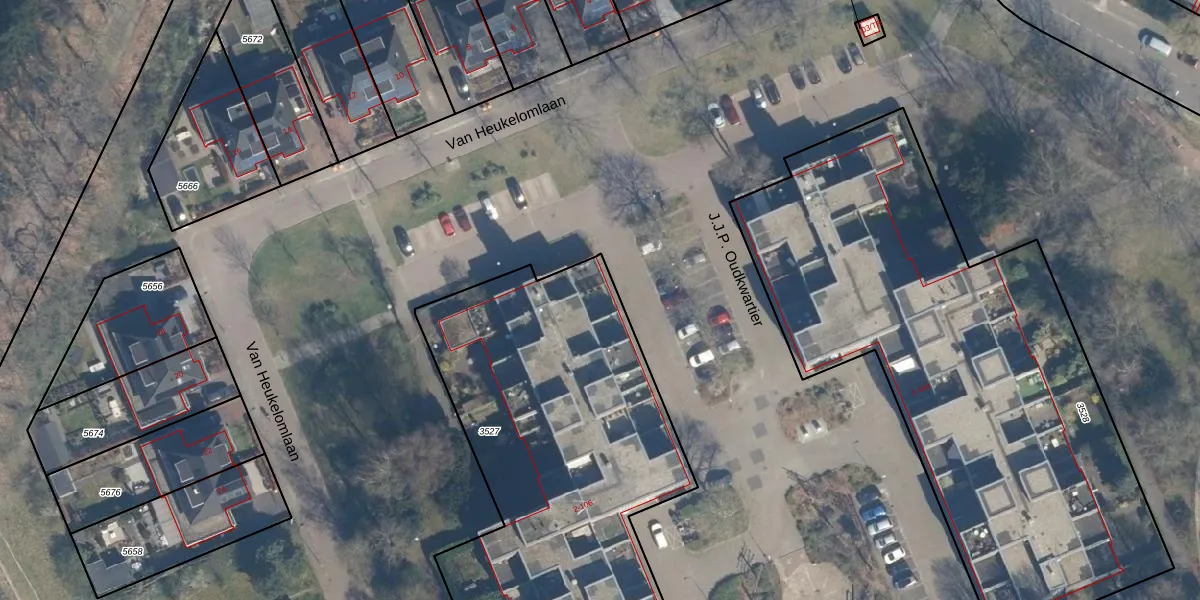 Het perceel waarop J.J.P. Oudkwartier 1-GB53 staat heeft een oppervlakte van 2855 m². Dit is een zeer groot perceel. De perceeloppervlakte wordt geregistreerd door het Kadaster. Gedetailleerde informatie over de maten van dit perceel kunt u vinden in het rapport Kadastrale kaart met maatvoering van J.J.P. Oudkwartier 1-GB53.
