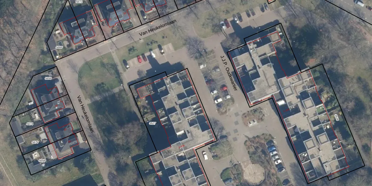 Het perceel waarop J.J.P. Oudkwartier 1-GB58 staat heeft een oppervlakte van 2855 m². Dit is een zeer groot perceel. De perceeloppervlakte wordt geregistreerd door het Kadaster. Gedetailleerde informatie over de maten van dit perceel kunt u vinden in het rapport Kadastrale kaart met maatvoering van J.J.P. Oudkwartier 1-GB58.
