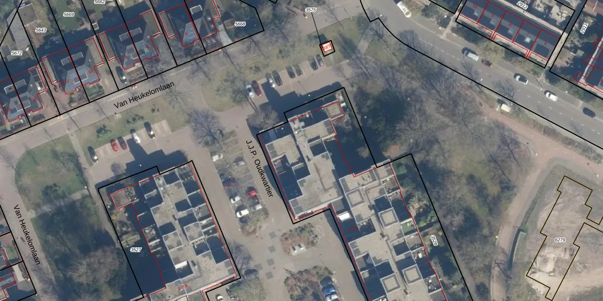 Het perceel waarop J.J.P. Oudkwartier 1-GB3 staat heeft een oppervlakte van 2855 m². Dit is een zeer groot perceel. De perceeloppervlakte wordt geregistreerd door het Kadaster. Gedetailleerde informatie over de maten van dit perceel kunt u vinden in het rapport Kadastrale kaart met maatvoering van J.J.P. Oudkwartier 1-GB3.
