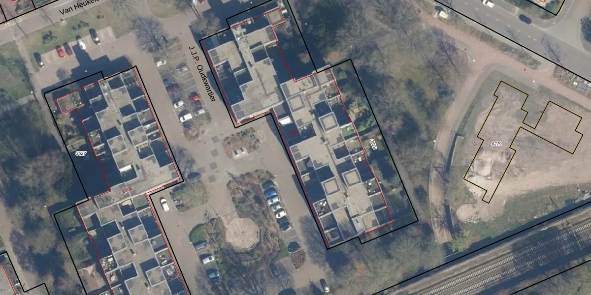 Het perceel waarop J.J.P. Oudkwartier 91 staat heeft een oppervlakte van 2855 m². Dit is een zeer groot perceel. De perceeloppervlakte wordt geregistreerd door het Kadaster. Gedetailleerde informatie over de maten van dit perceel kunt u vinden in het rapport Kadastrale kaart met maatvoering van J.J.P. Oudkwartier 91.