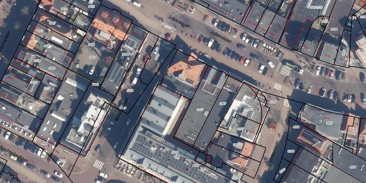 Julianalaan 12-E is gelegen op kadastraal perceel BIL01E5118. Deze kadastrale aanduiding is uniek en wordt gebruikt door het Kadaster om eigendomsrechten en andere zakelijke rechten vast te leggen. Het perceel maakt onderdeel uit van de kadastrale gemeente De Bilt.