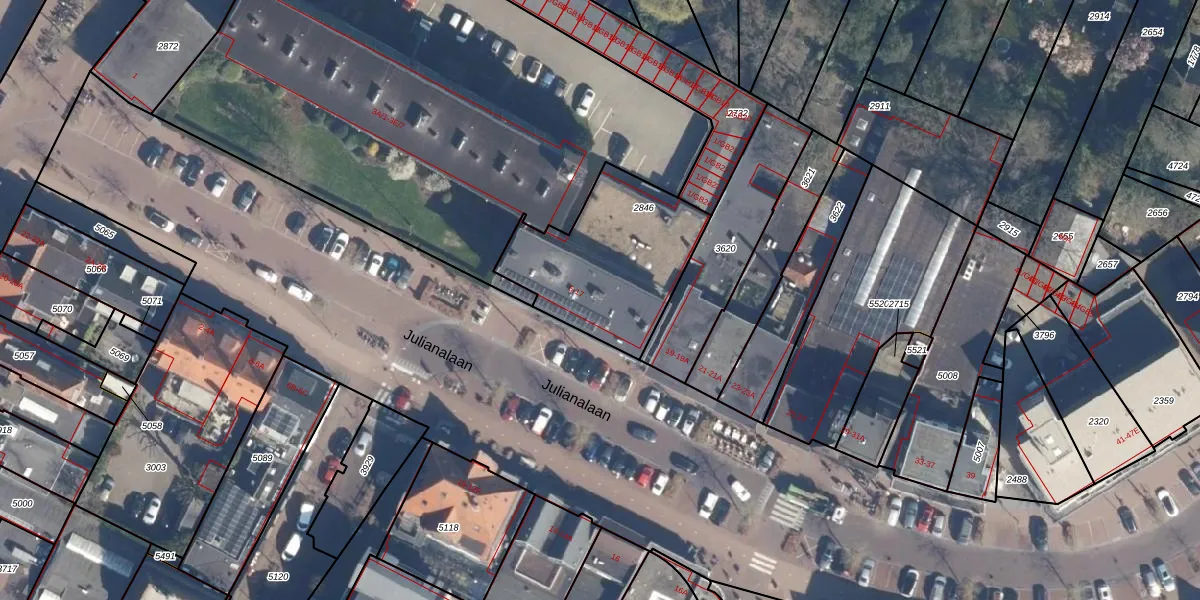 Het perceel waarop Julianalaan 17-A staat heeft een oppervlakte van 622 m². Dit is een groot perceel. De perceeloppervlakte wordt geregistreerd door het Kadaster. Gedetailleerde informatie over de maten van dit perceel kunt u vinden in het rapport Kadastrale kaart met maatvoering van Julianalaan 17-A.