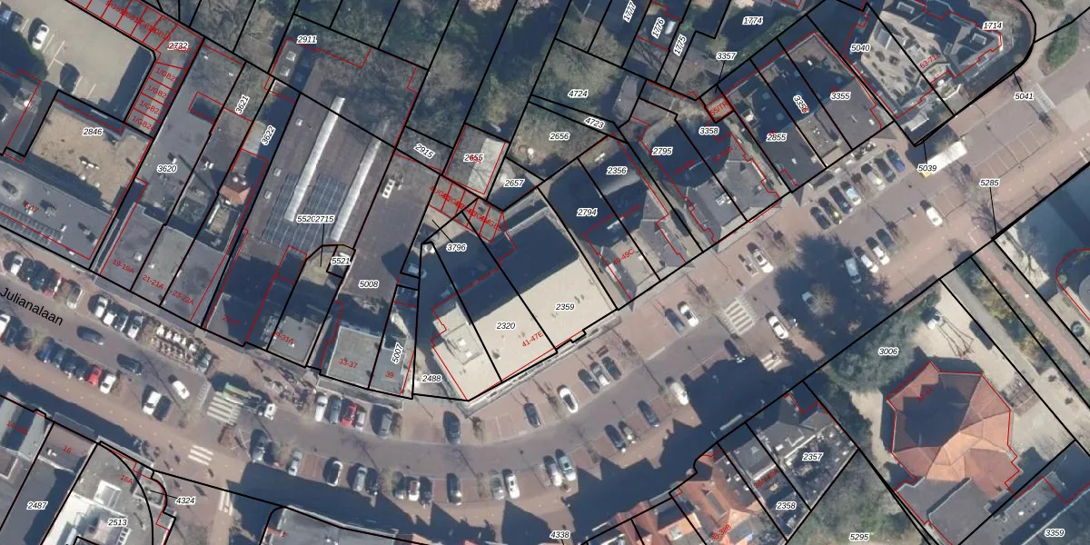 Het perceel waarop Julianalaan 47-D staat heeft een oppervlakte van 415 m². Dit is een groot perceel. De perceeloppervlakte wordt geregistreerd door het Kadaster. Gedetailleerde informatie over de maten van dit perceel kunt u vinden in het rapport Kadastrale kaart met maatvoering van Julianalaan 47-D.