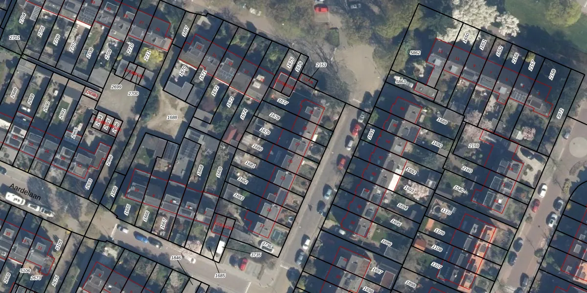 Gebruik de zoekbalk of klik op een perceel voor informatie over de adressen binnen dit perceel.