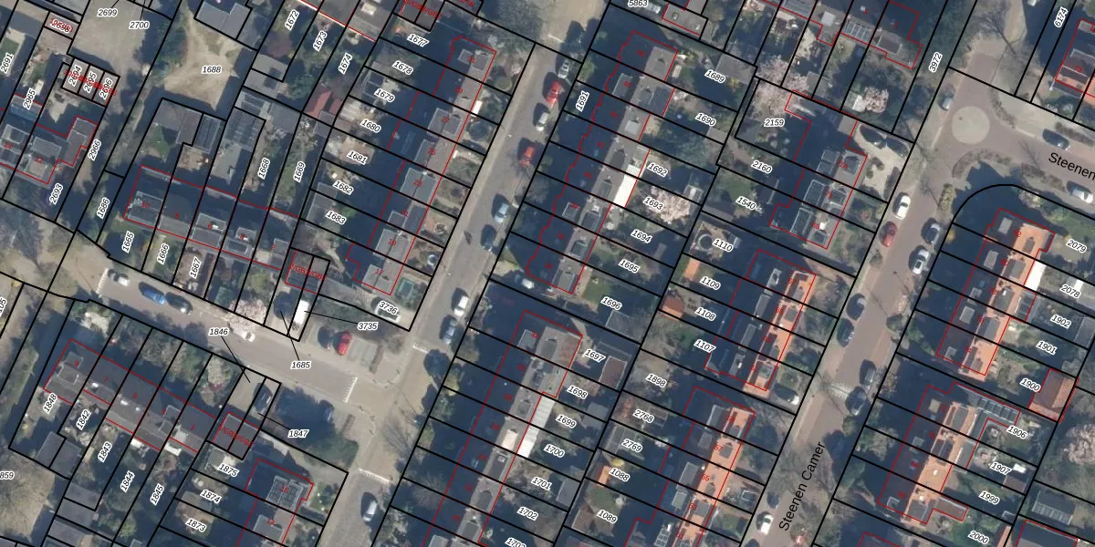 Gebruik de zoekbalk of klik op een perceel voor informatie over de adressen binnen dit perceel.