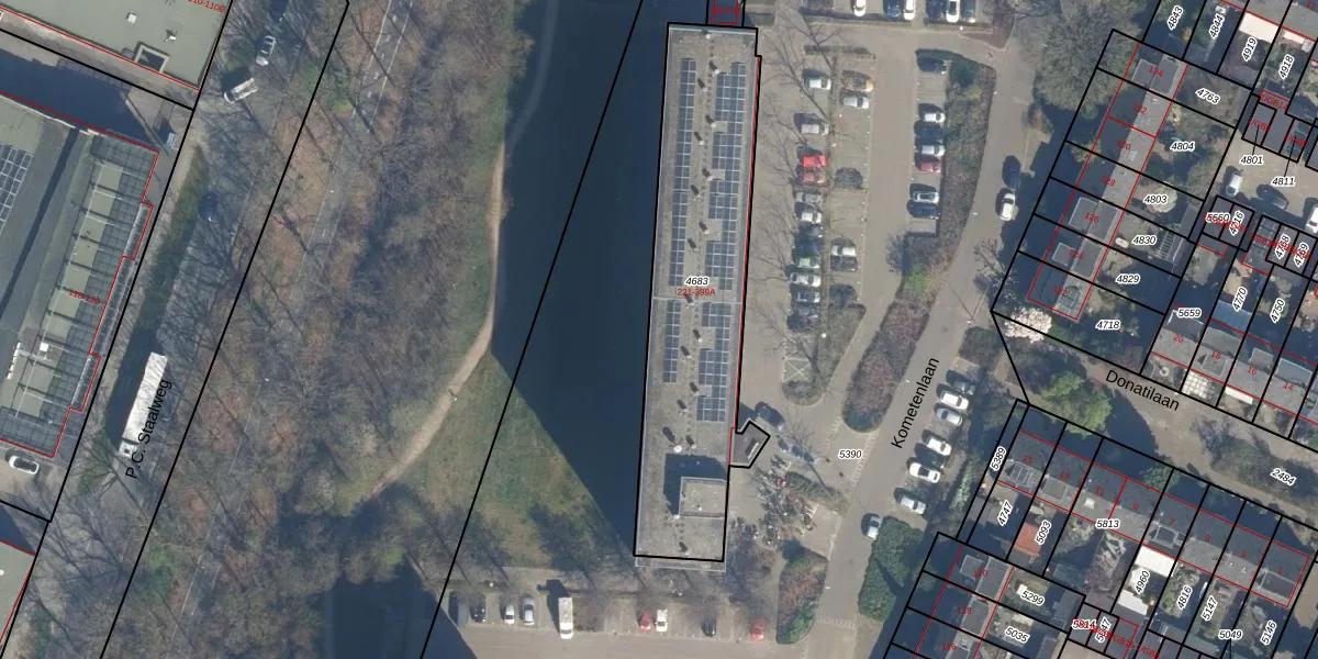 Het perceel waarop Kometenlaan 219-A staat heeft een oppervlakte van 1190 m². Dit is een zeer groot perceel. De perceeloppervlakte wordt geregistreerd door het Kadaster. Gedetailleerde informatie over de maten van dit perceel kunt u vinden in het rapport Kadastrale kaart met maatvoering van Kometenlaan 219-A.
