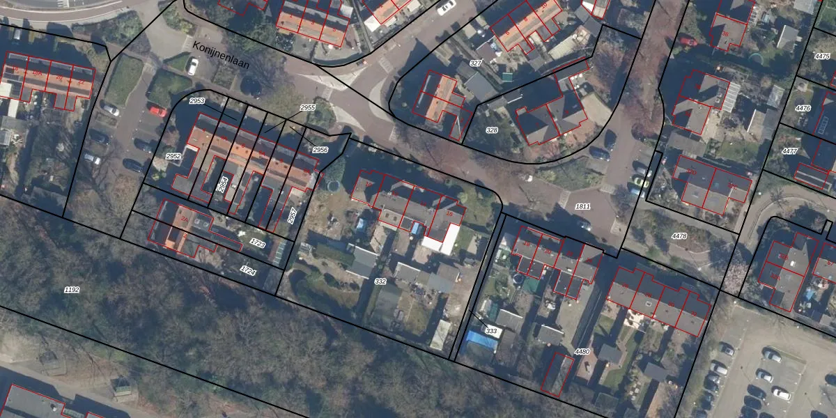 Het perceel waarop Konijnenlaan 14 staat heeft een oppervlakte van 1800 m². Dit is een zeer groot perceel. De perceeloppervlakte wordt geregistreerd door het Kadaster. Gedetailleerde informatie over de maten van dit perceel kunt u vinden in het rapport Kadastrale kaart met maatvoering van Konijnenlaan 14.