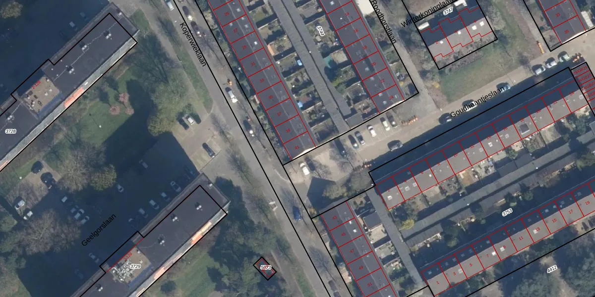 Het perceel waarop Koperwieklaan 41 staat heeft een oppervlakte van 5080 m². Dit is een zeer groot perceel. De perceeloppervlakte wordt geregistreerd door het Kadaster. Gedetailleerde informatie over de maten van dit perceel kunt u vinden in het rapport Kadastrale kaart met maatvoering van Koperwieklaan 41.