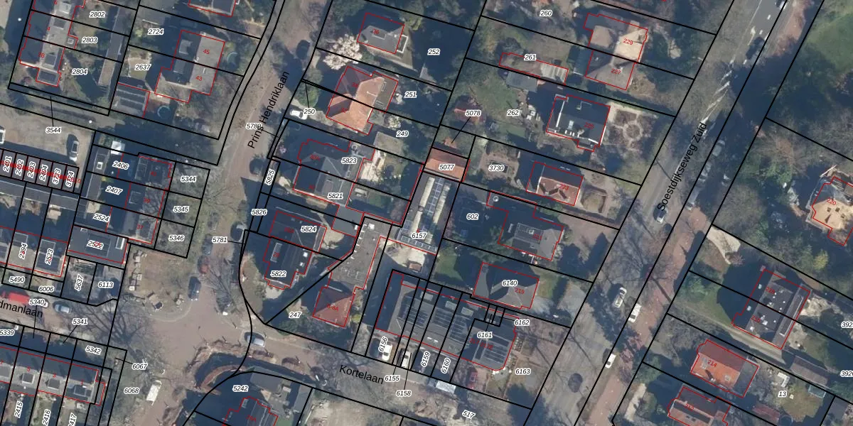 Gebruik de zoekbalk of klik op een perceel voor informatie over de adressen binnen dit perceel.