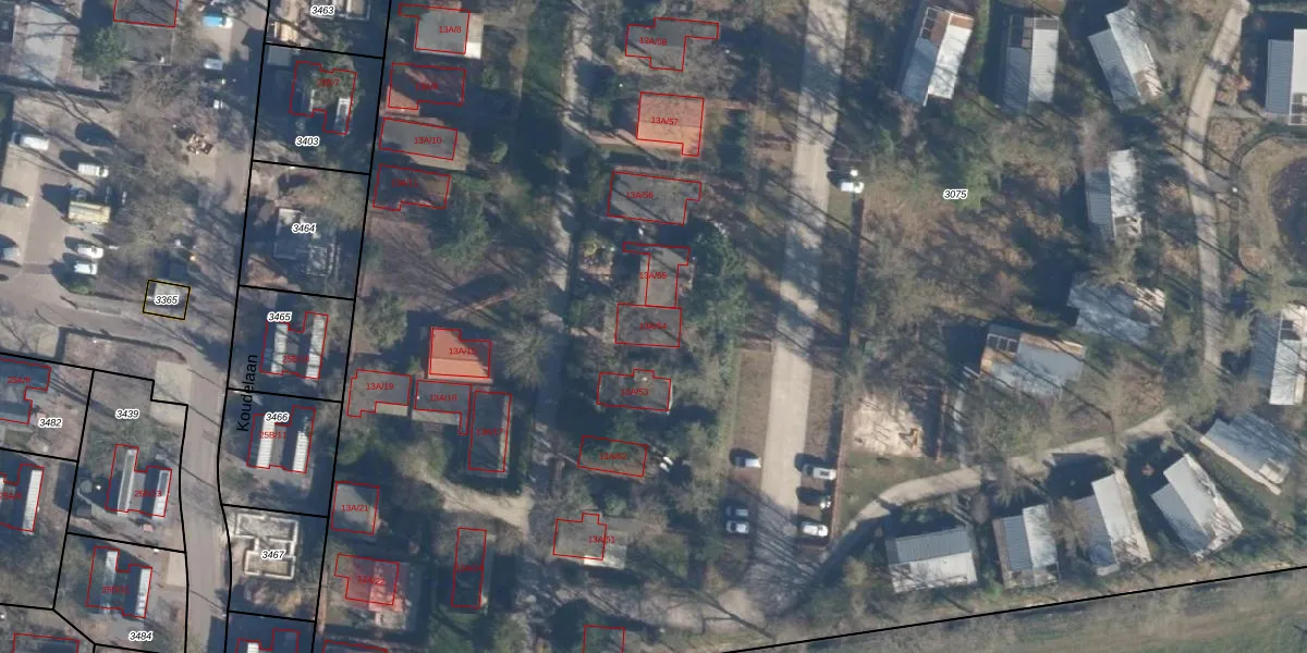 Het perceel waarop Koudelaan 13-A-54 staat heeft een oppervlakte van 3,3 ha. Dit is een zeer groot perceel. De perceeloppervlakte wordt geregistreerd door het Kadaster. Gedetailleerde informatie over de maten van dit perceel kunt u vinden in het rapport Kadastrale kaart met maatvoering van Koudelaan 13-A-54.