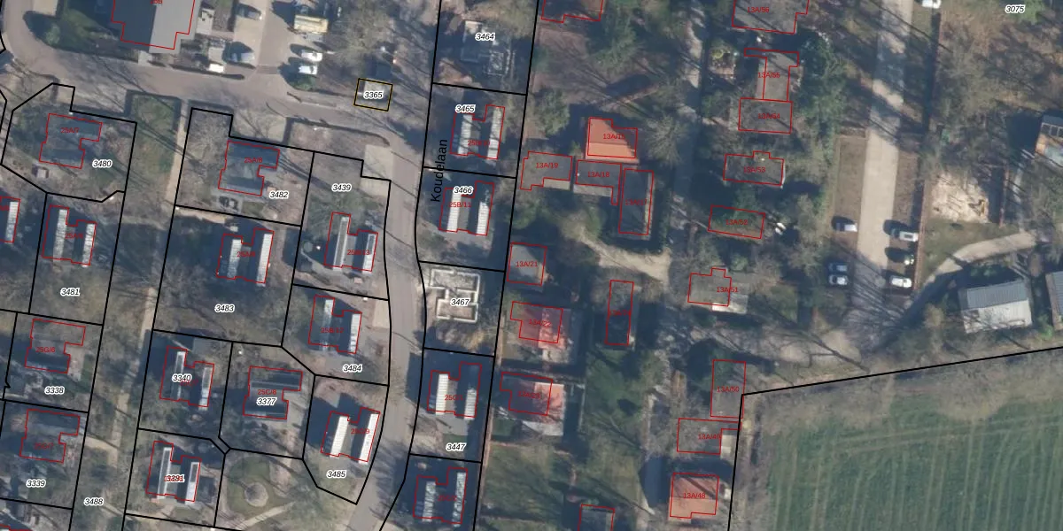 Het perceel waarop Koudelaan 13-A-21 staat heeft een oppervlakte van 3,3 ha. Dit is een zeer groot perceel. De perceeloppervlakte wordt geregistreerd door het Kadaster. Gedetailleerde informatie over de maten van dit perceel kunt u vinden in het rapport Kadastrale kaart met maatvoering van Koudelaan 13-A-21.