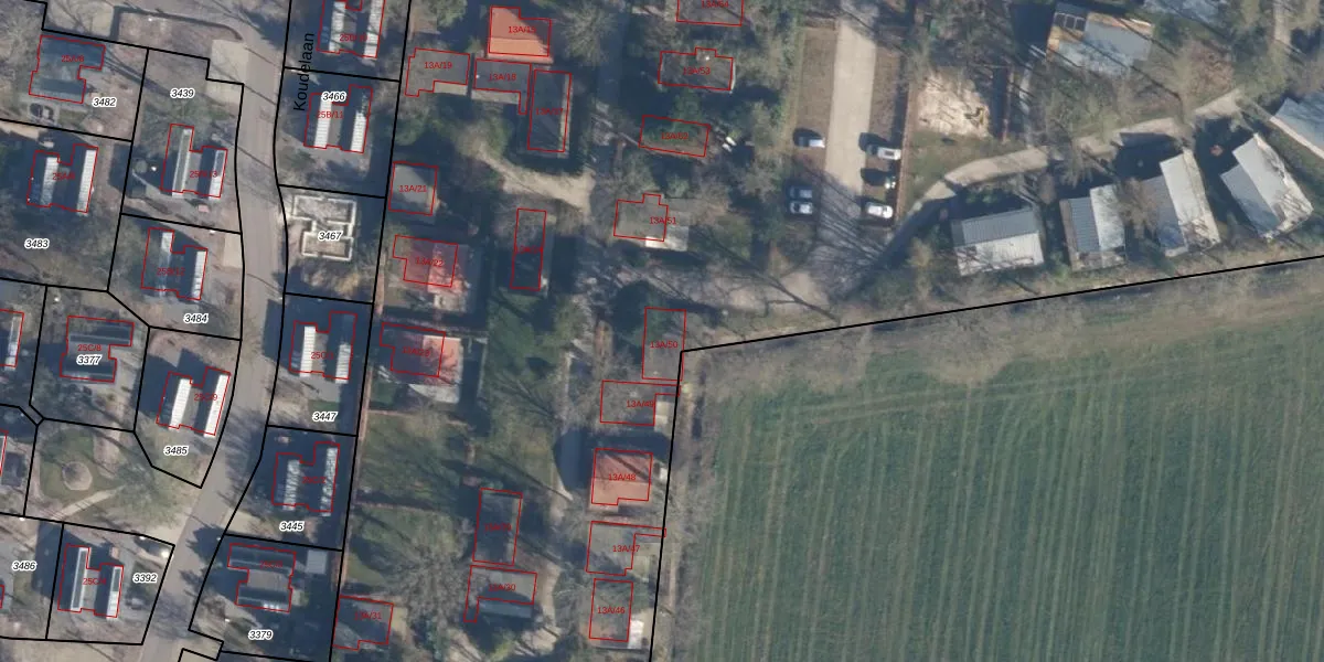 Het perceel waarop Koudelaan 13-A-50 staat heeft een oppervlakte van 3,3 ha. Dit is een zeer groot perceel. De perceeloppervlakte wordt geregistreerd door het Kadaster. Gedetailleerde informatie over de maten van dit perceel kunt u vinden in het rapport Kadastrale kaart met maatvoering van Koudelaan 13-A-50.