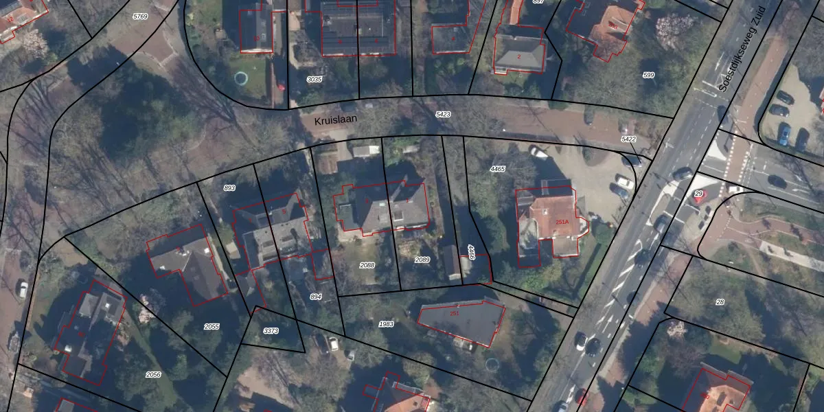 Het perceel waarop Kruislaan 1 staat heeft een oppervlakte van 575 m². Dit is een groot perceel. De perceeloppervlakte wordt geregistreerd door het Kadaster. Gedetailleerde informatie over de maten van dit perceel kunt u vinden in het rapport Kadastrale kaart met maatvoering van Kruislaan 1.