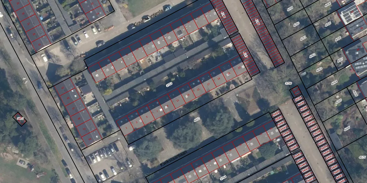 Het perceel waarop Kwikstaartlaan 13 staat heeft een oppervlakte van 4925 m². Dit is een zeer groot perceel. De perceeloppervlakte wordt geregistreerd door het Kadaster. Gedetailleerde informatie over de maten van dit perceel kunt u vinden in het rapport Kadastrale kaart met maatvoering van Kwikstaartlaan 13.