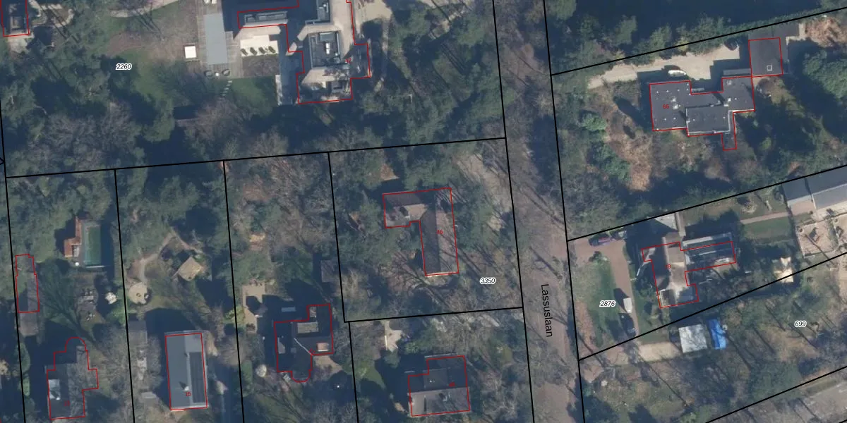 Het perceel waarop Lassuslaan 46 staat heeft een oppervlakte van 1700 m². Dit is een zeer groot perceel. De perceeloppervlakte wordt geregistreerd door het Kadaster. Gedetailleerde informatie over de maten van dit perceel kunt u vinden in het rapport Kadastrale kaart met maatvoering van Lassuslaan 46.